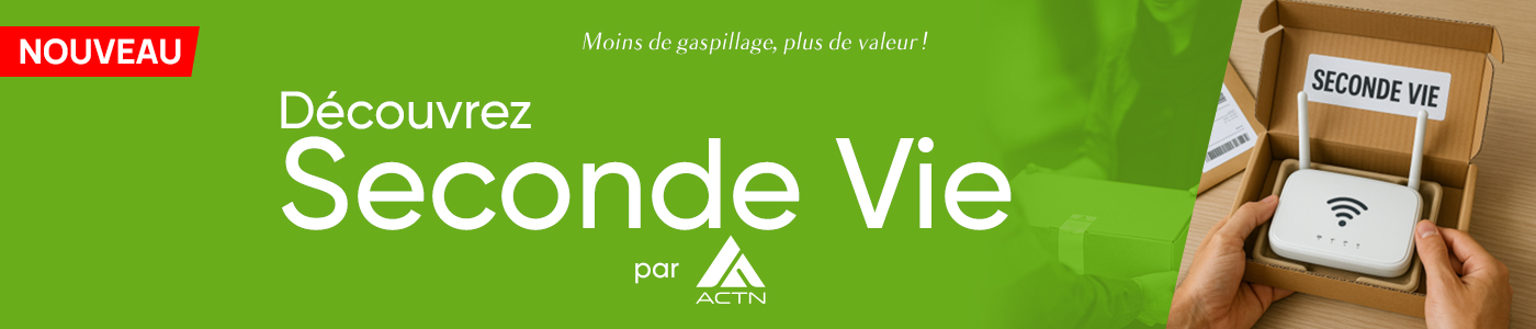 Chez ACTN, nous croyons qu’un produit mérite toujours une nouvelle chance. C’est pourquoi nous avons lancé notre initiative « Seconde Vie » : une offre qui valorise les retours clients et les articles neufs dont l’emballage a pu être endommagé.