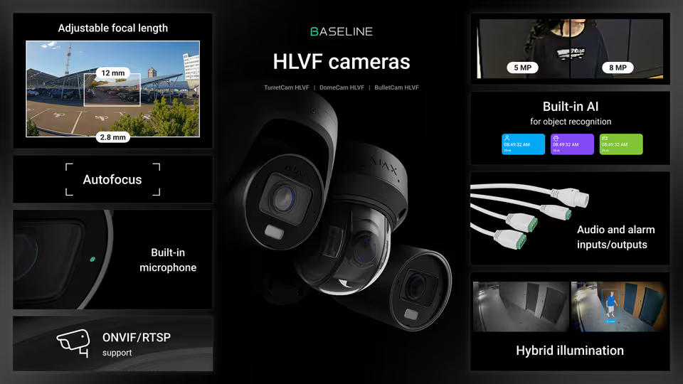 La ligne de vidéosurveillance Ajax connaît une expansion fulgurante et suit désormais la même logique de portefeuille que la protection anti-intrusion Ajax. La ligne de produits Baseline offre tous les éléments essentiels pour une vidéosurveillance efficace, tandis que la ligne de produits Superior propose un matériel ultra-résistant, des fonctionnalités avancées et une excellence sans aucun compromis.