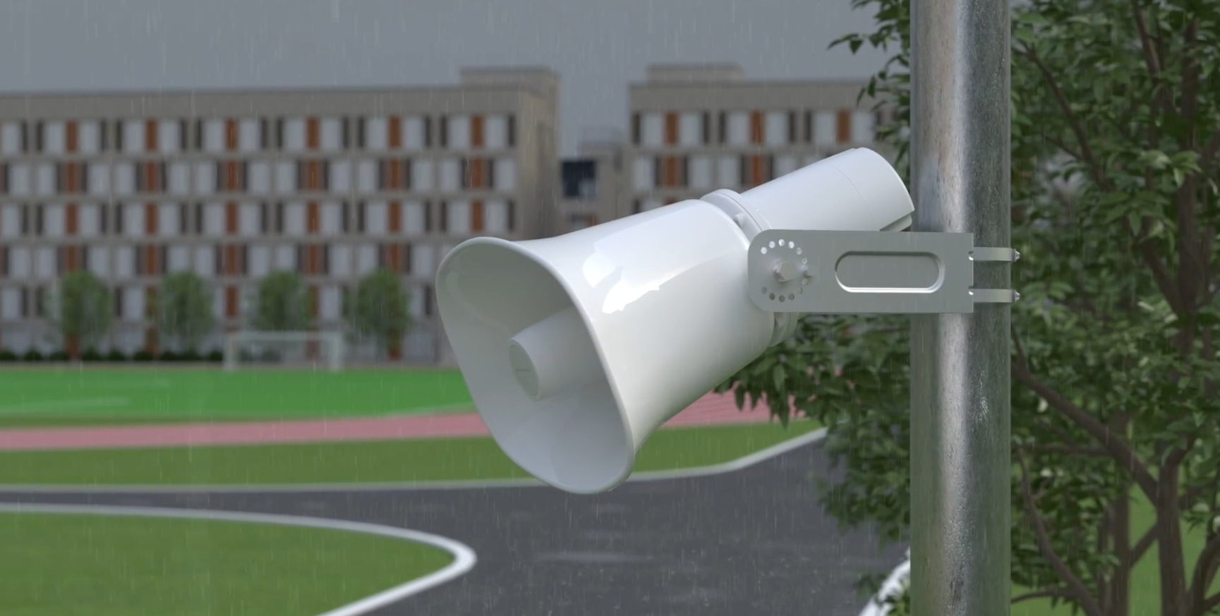 Le GSC3518HS est équipé d’un haut-parleur haute fidélité de 50 W, capable de produire un niveau sonore allant jusqu’à 126 dBA — suffisant pour couvrir de vastes zones, qu’il s’agisse de terrains de sport, de parcs, d’entrepôts ou de grands campus.